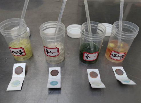 ,檢測試紙均呈現為藍色,結果為陰性,意味著本次抽取的蔬果都未測出農藥殘留。
